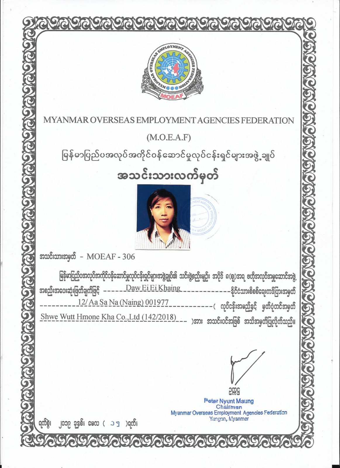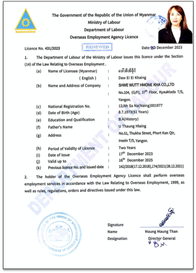 Shwe Wutt Hmone Kha Co., Ltd(海外ミャンマー人材送出し機関)は2018年に設立され、 タイ、マレーシア、日本などの市場に向けた国際人材採用サービスを提供しています。 豊富な経験を活かし、養鶏加工、食品製造、木材加工、プラスチック・ゴム製造、 皮革製品、建設、ホスピタリティ、農業など多様な業界へ幅広い人材を供給しています。